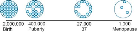 puberty: 300,000 to 500,000 oocytes